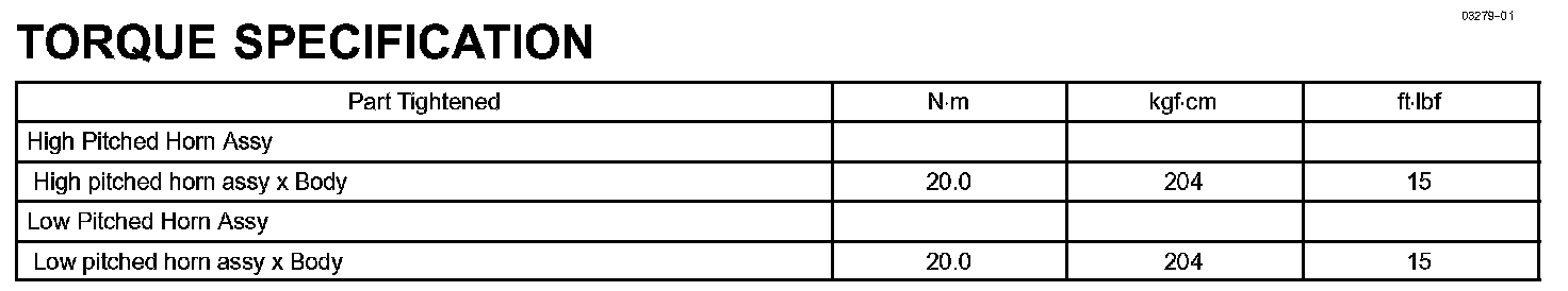 Horn - Torque Specification: