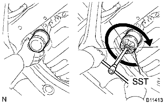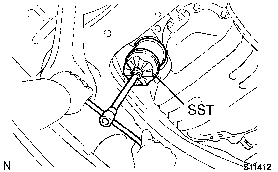 a) Using SST, remove the oil filter.