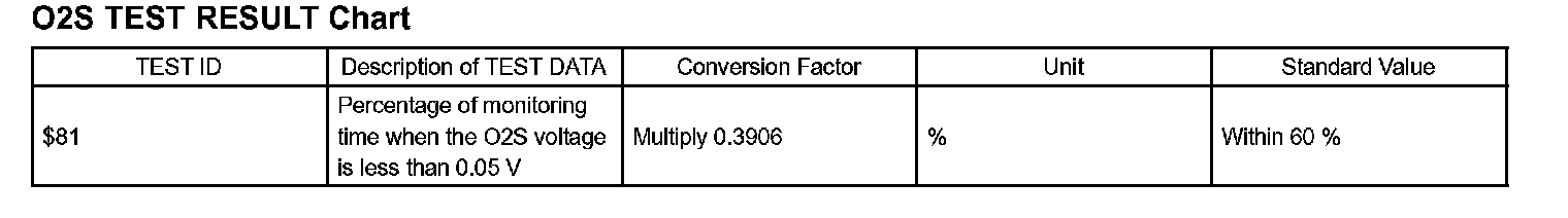 2. Find the conversion factor value of "TIME $81" in the O2S TEST RESULT chart below. 0.3906 is specified for $81 in this chart.