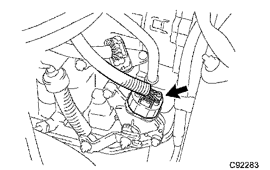 d) Remove the clip and disconnect the control cable from the control cable bracket.