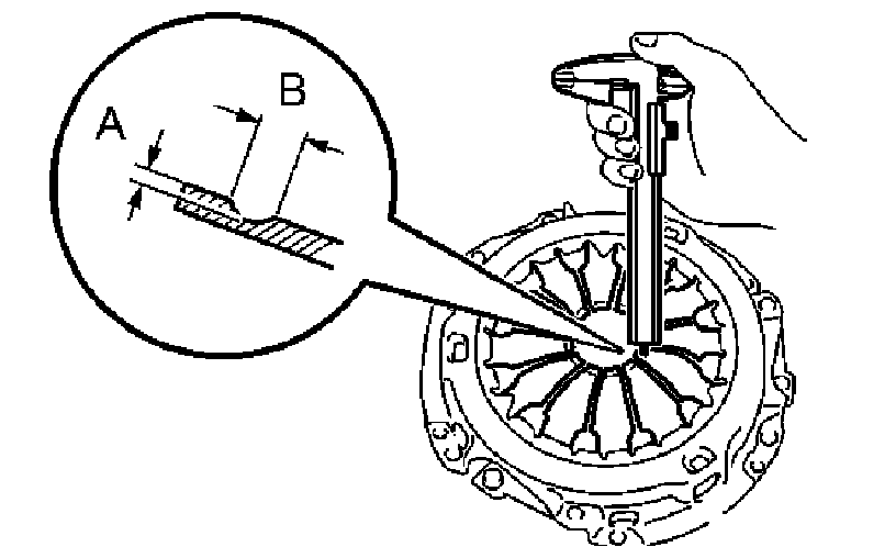 a) Using vernier calipers, inspect the diaphragm spring for depth and width of wear.