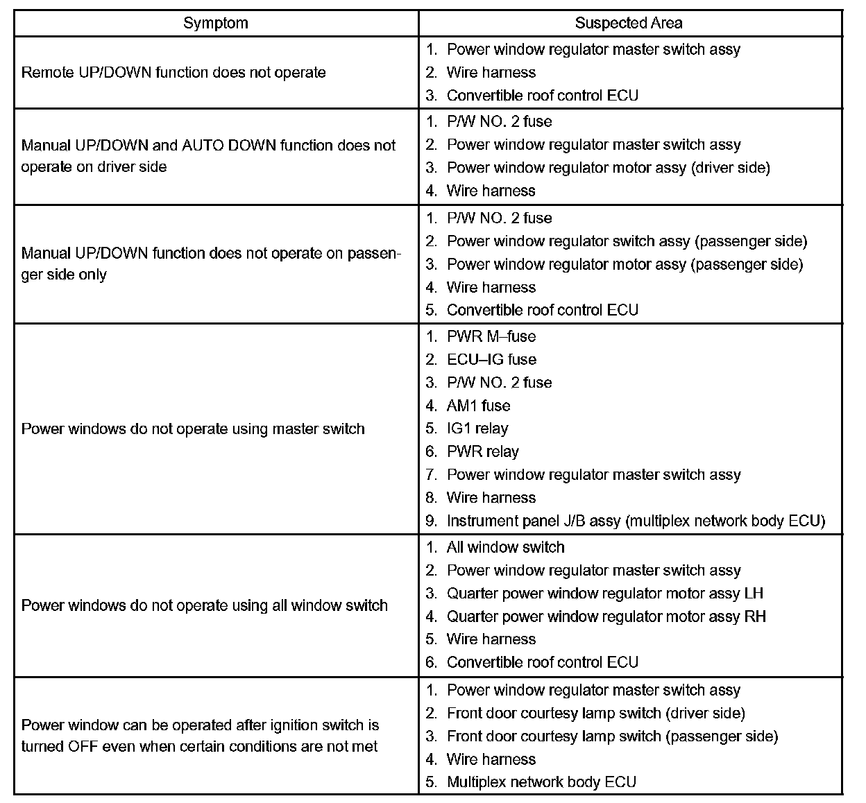 Problem Symptoms Table: