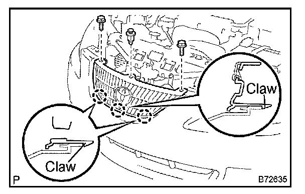 b. Using a screwdriver, disengage the 3 claws and remove the radiator grille.
