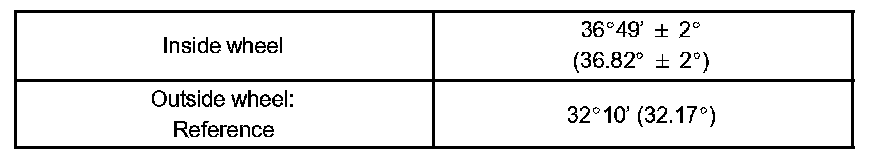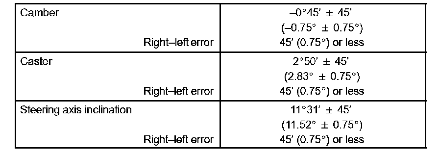 The body and suspension may be damaged if the camber is not correctly adjusted according to the above table.