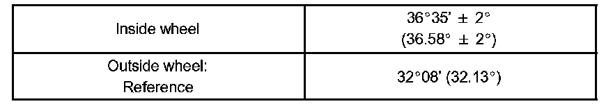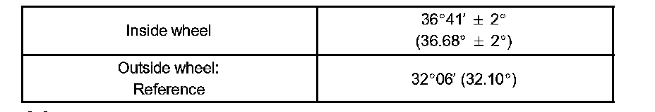 If the right and left inside wheel angles differ from the specified range, check and adjust the right and left rack end lengths.