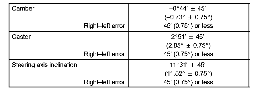 Check the suspension parts for damaged and/or worn out parts if the caster and steering axis inclination are not within the specified range after the camber has been correctly adjusted.