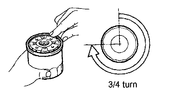 c) Lightly screw the oil filter into place, and tighten it until the gasket contacts the seat.