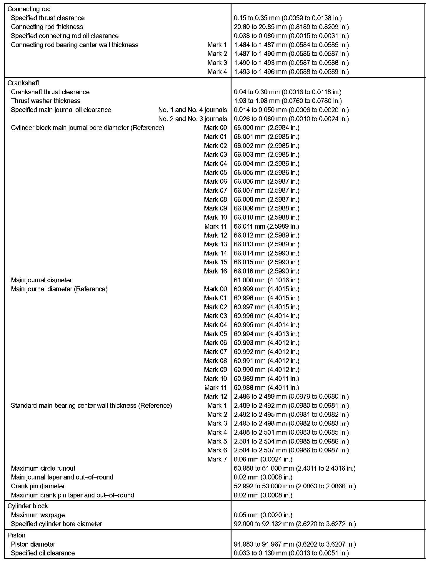Engine Mechanical - Service Data Part 2: