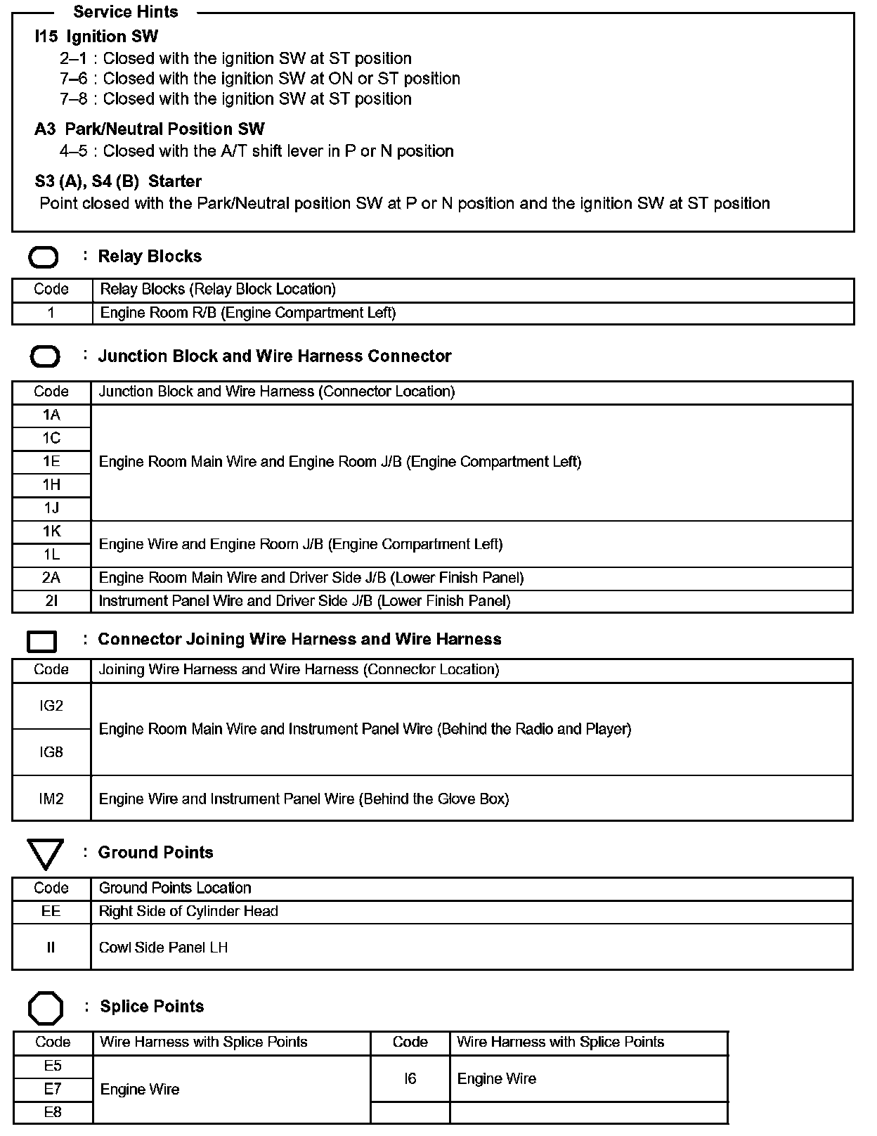 Locations: The locations of components, connectors, ground points, and splices referred to within these diagrams can be found at Vehicle Locations. Locations