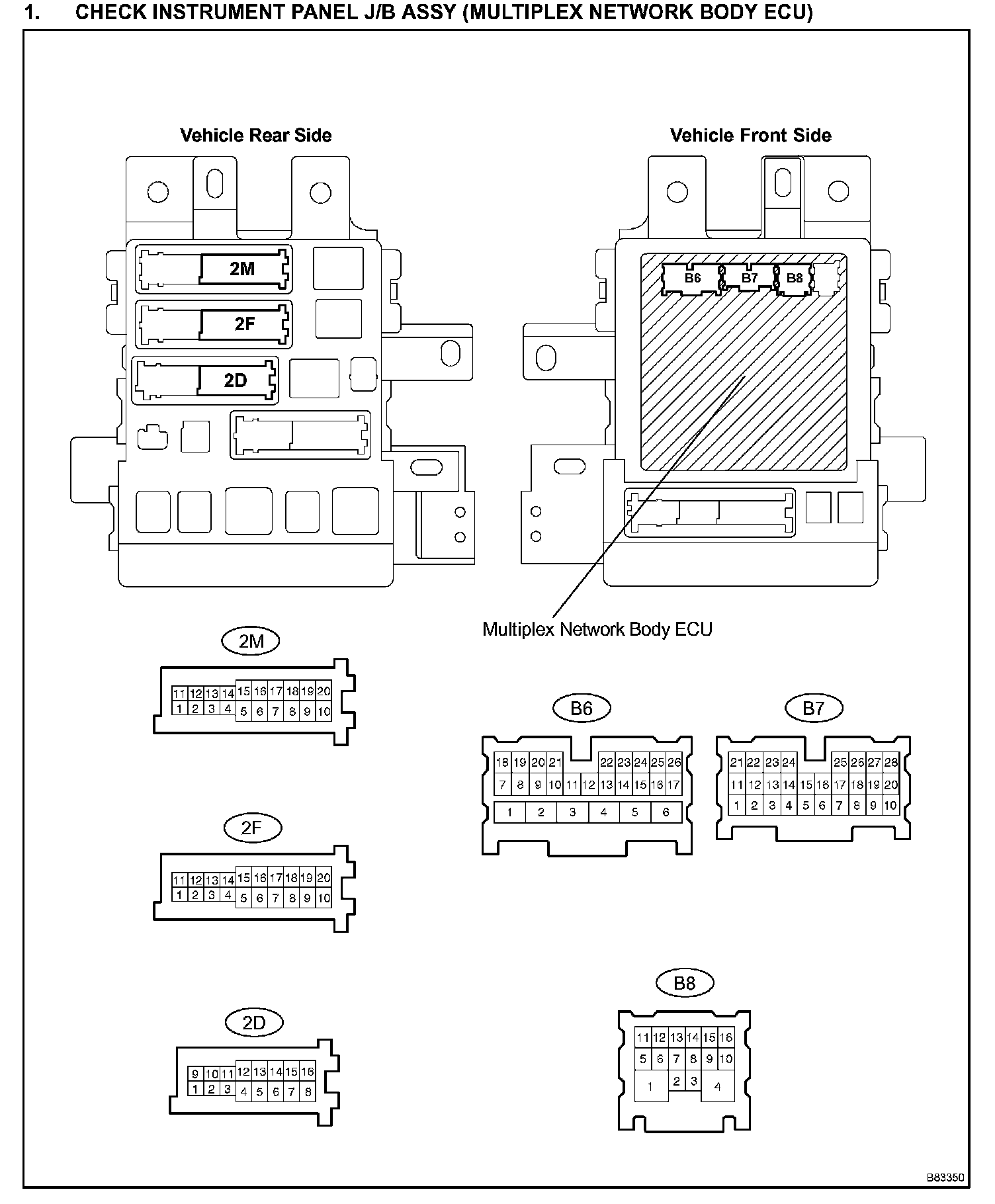 1. CHECK INSTRUMENT PANEL J/B ASSEMBLY (MULTIPLEX NETWORK BODY ECU)