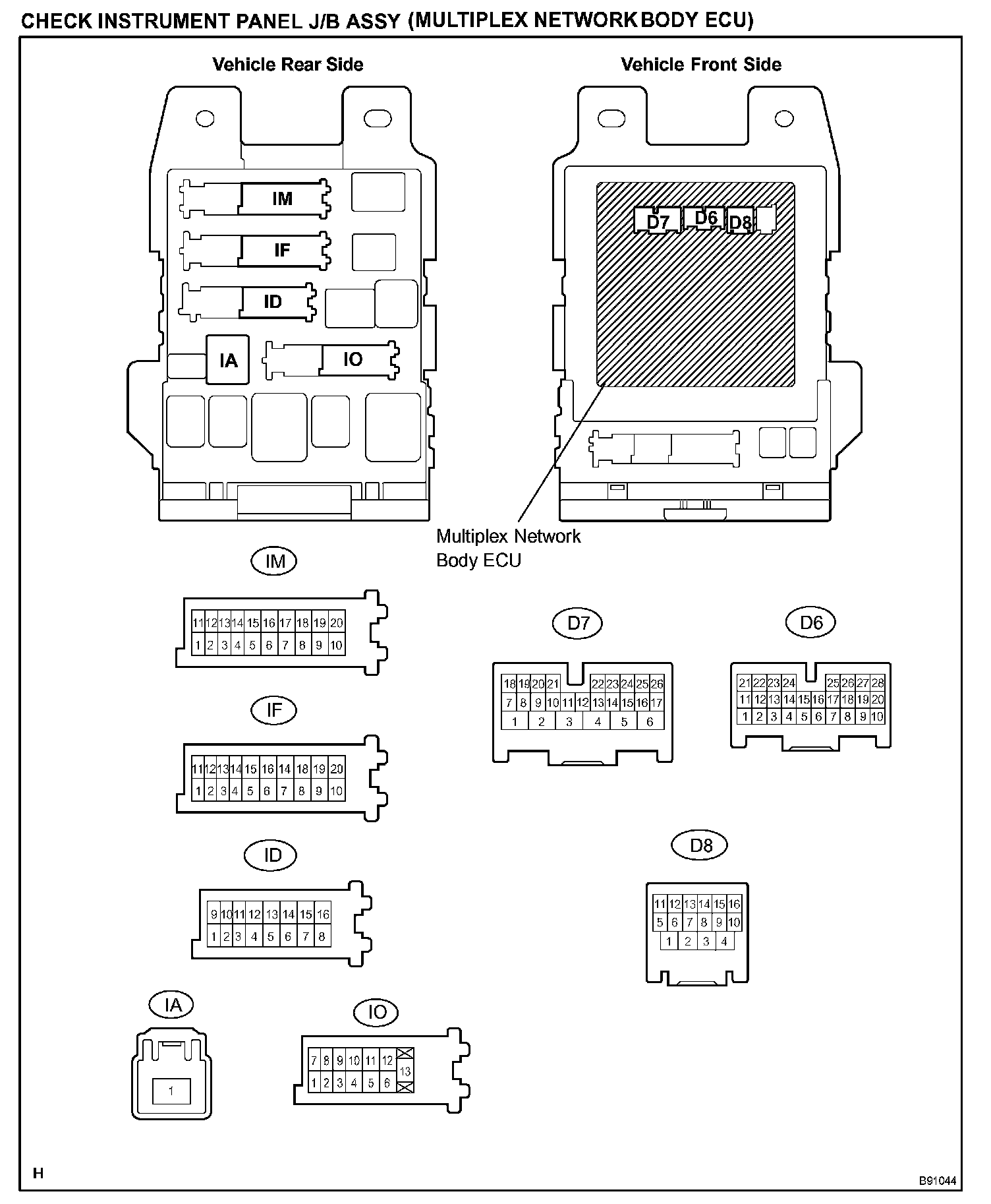 Terminals Of Control Module/Pinouts - Check Instrument J/B (Multiplex Network Body ECU) (Part 1):