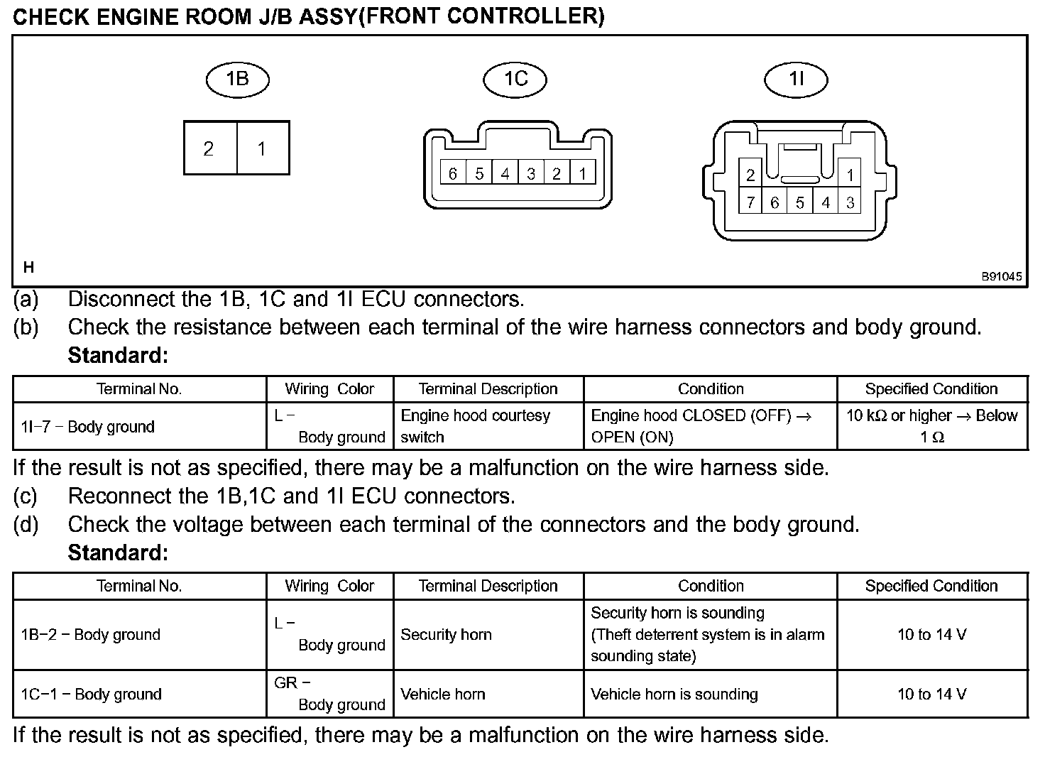 Terminals Of Control Module/Pinouts - Check Engine Room J/B Assy (Front Controller):