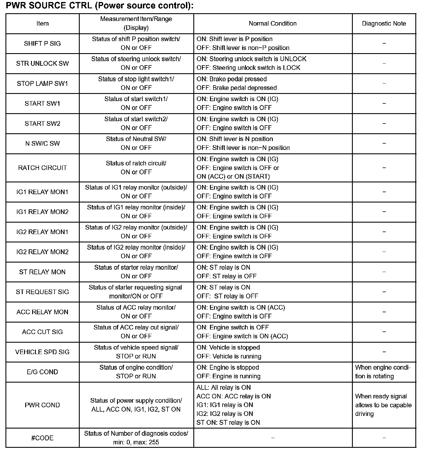 DATA LISTHINT: Using the hand-held tester's Data List allows switch, sensor, actuator and other item values to be read without removing any parts. Reading the Data List early in troubleshooting is one way to save time.