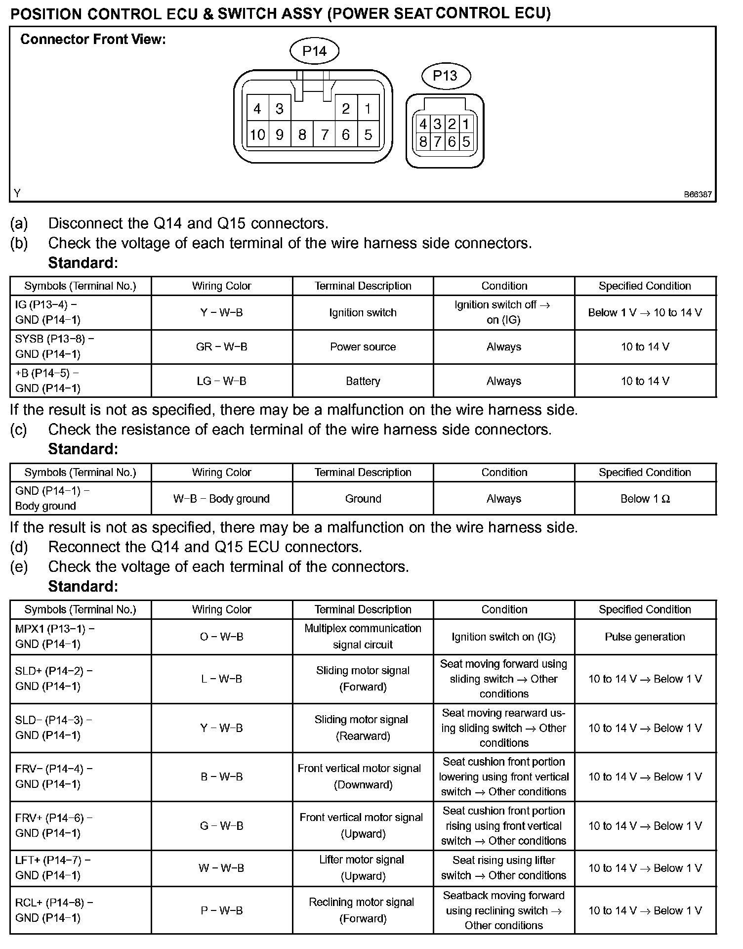Terminals Of Control Module/Pinouts - Position Control ECU & Switch Assy (Power Seat Control ECU) (Part 2):