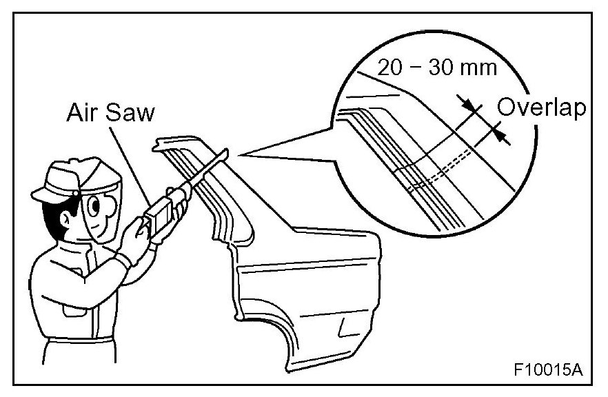 1. For joint areas, rough cut the new parts, leaving 20 - 30 mm (0.79 - 1.18 in.) overlap.