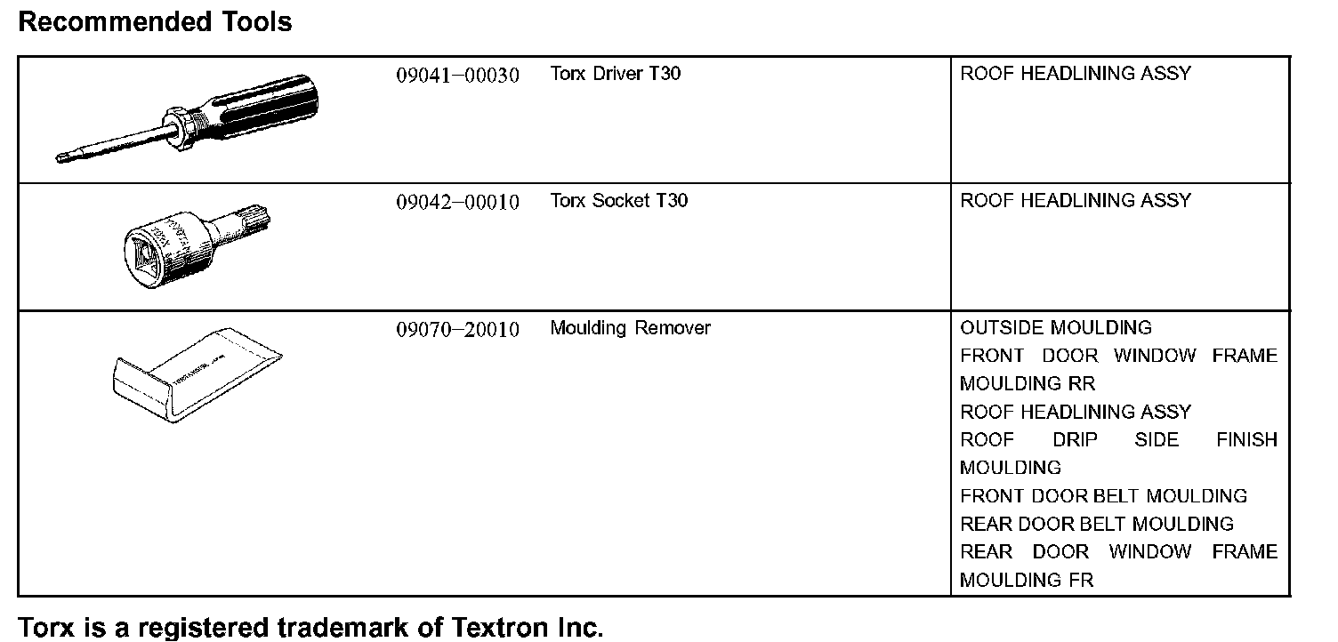 Exterior/Interior Trim-Recommended Tools: