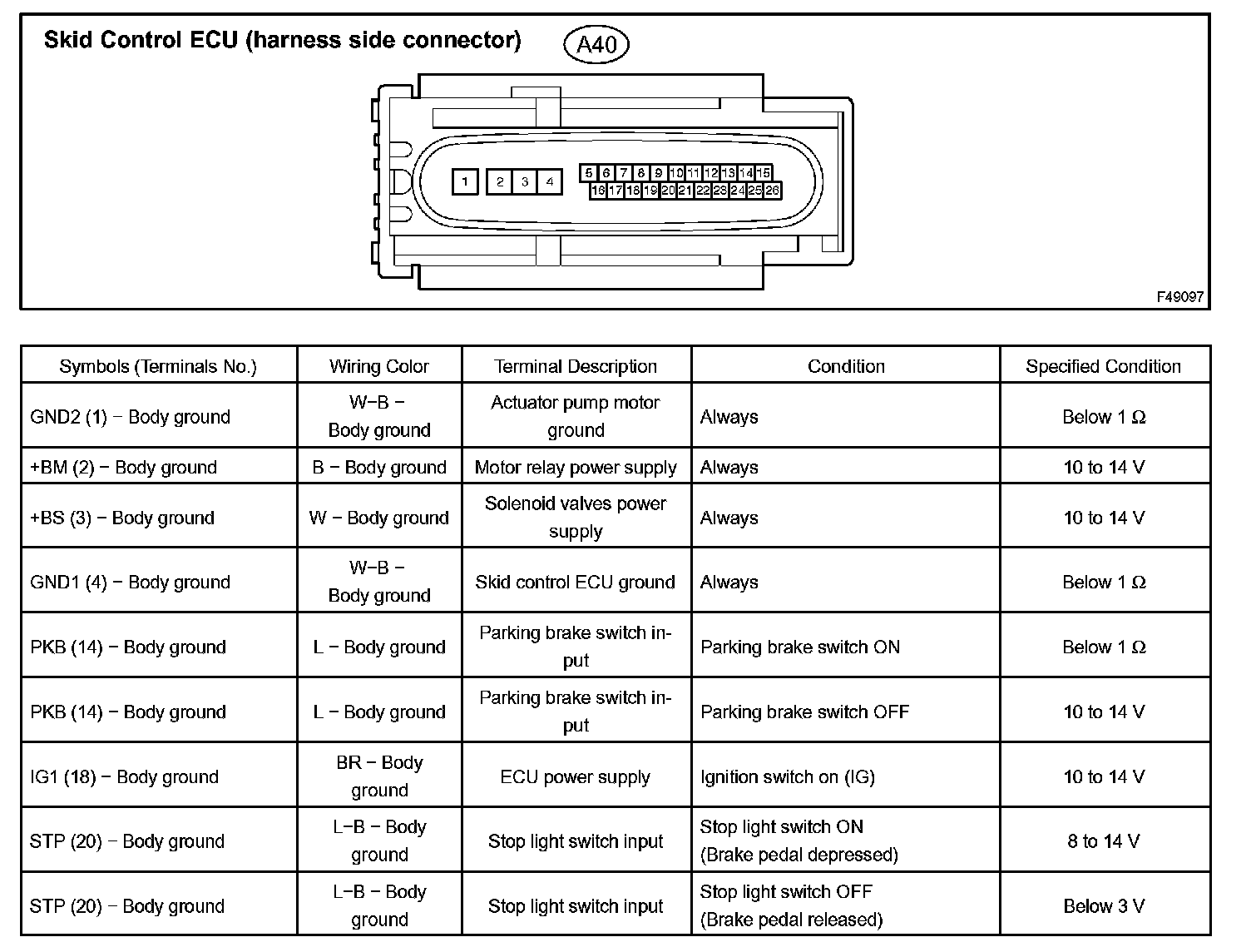 Terminals Of Control Module/Pinouts - Terminal Inspection: