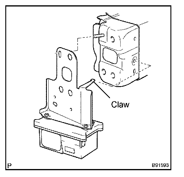 a. Install the laser sensor so that the claw contacts the flat surface around the hole on the front bumper mounting reinforcement.