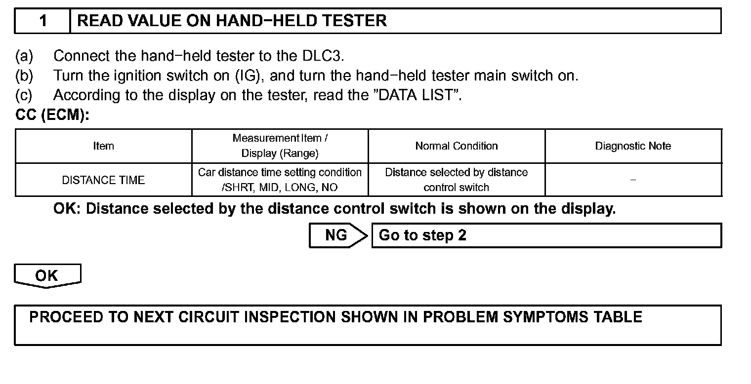 This switch sets the vehicle-to-vehicle distance mode.