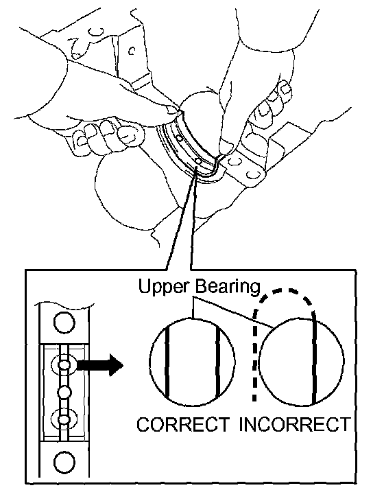 1. Install the upper bearing to the cylinder block as shown in the illustration.