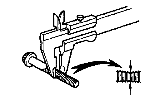 If the diameter is less than the minimum, replace the bolt.