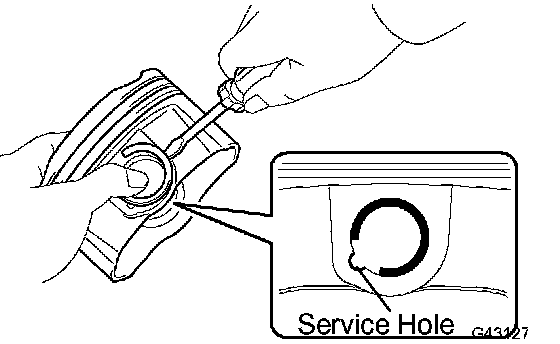 HINT: Be sure that end gap of the snap ring is not aligned with the pin hole cutout portion of the piston.
