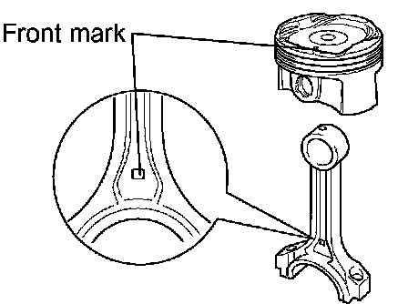 e. Check that the front mark of the connecting rod cap is facing forward.
