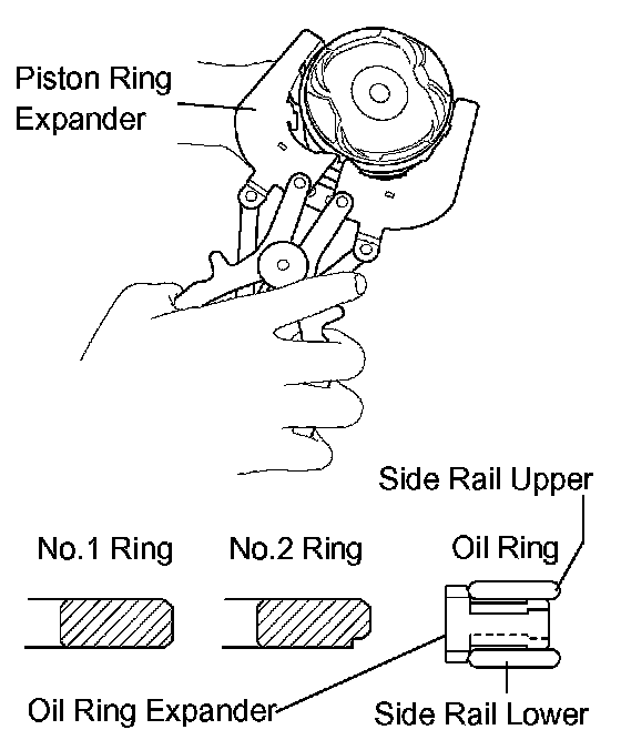 a. Install the oil ring expander and 2 side rails by hand.