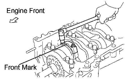 1. Mark the front of the bearing cap bolts with paint.