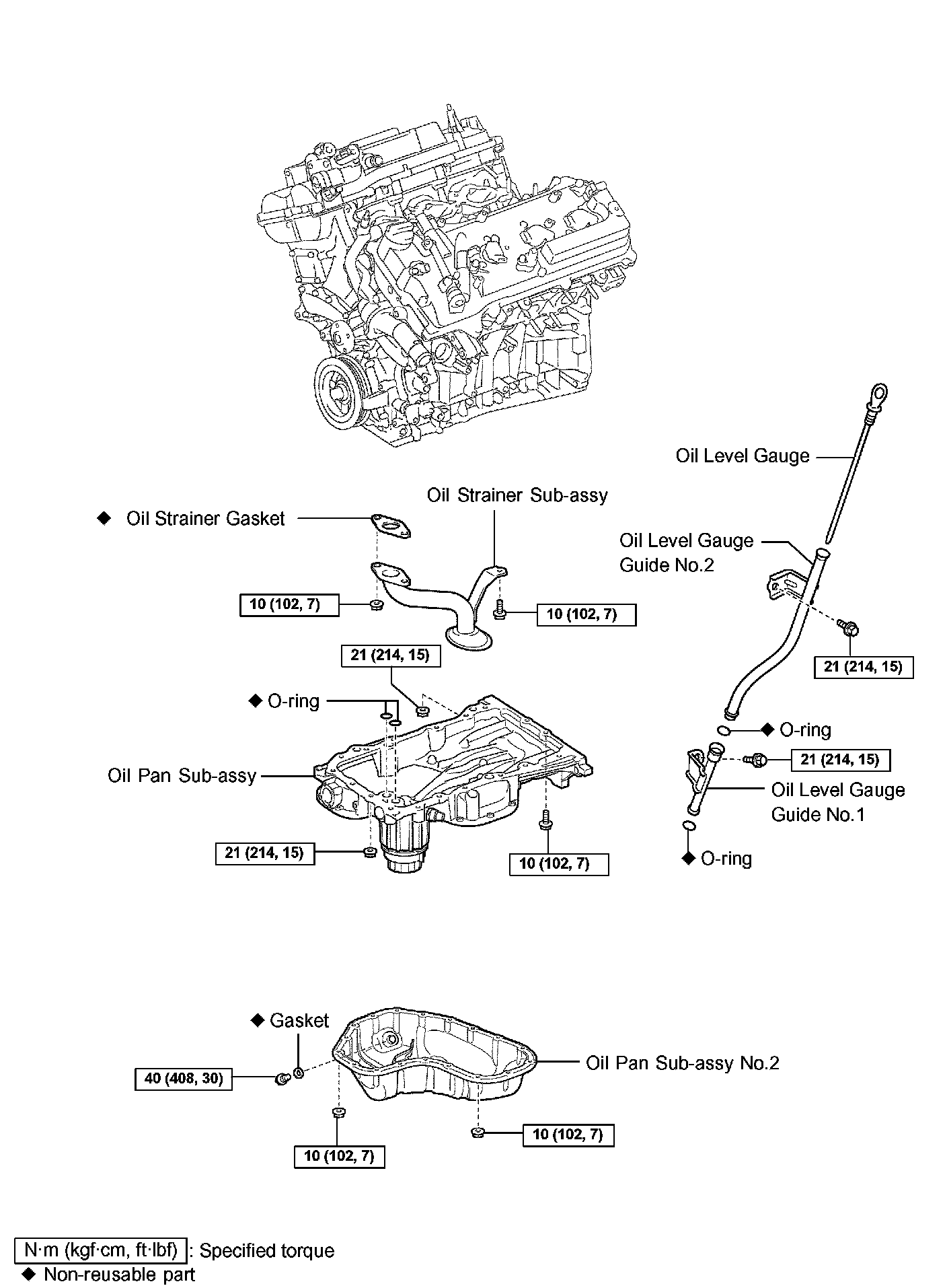 c. Install the oil pan No.2 with the 16 bolts and 2 nuts.