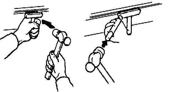 b. Remove the oil pan by prying between the oil pan and cylinder block with a screwdriver.