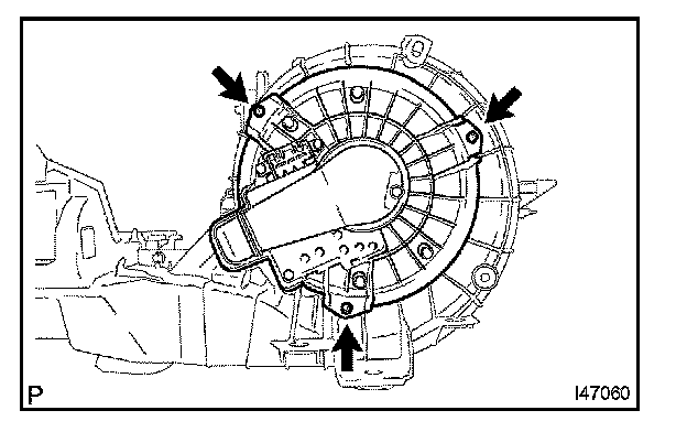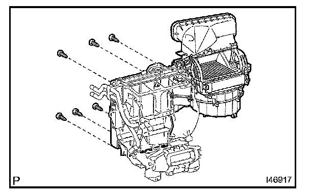 b. Remove the 6 screws and then the blower assembly with the cooler evaporator sub-assembly No.1.