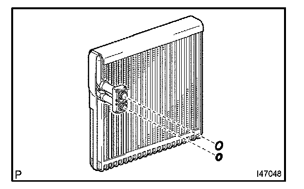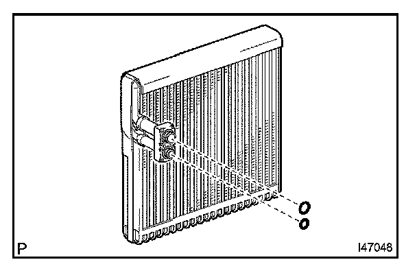 b. Remove the 2 O-rings from the cooler evaporator sub-assembly No.1.