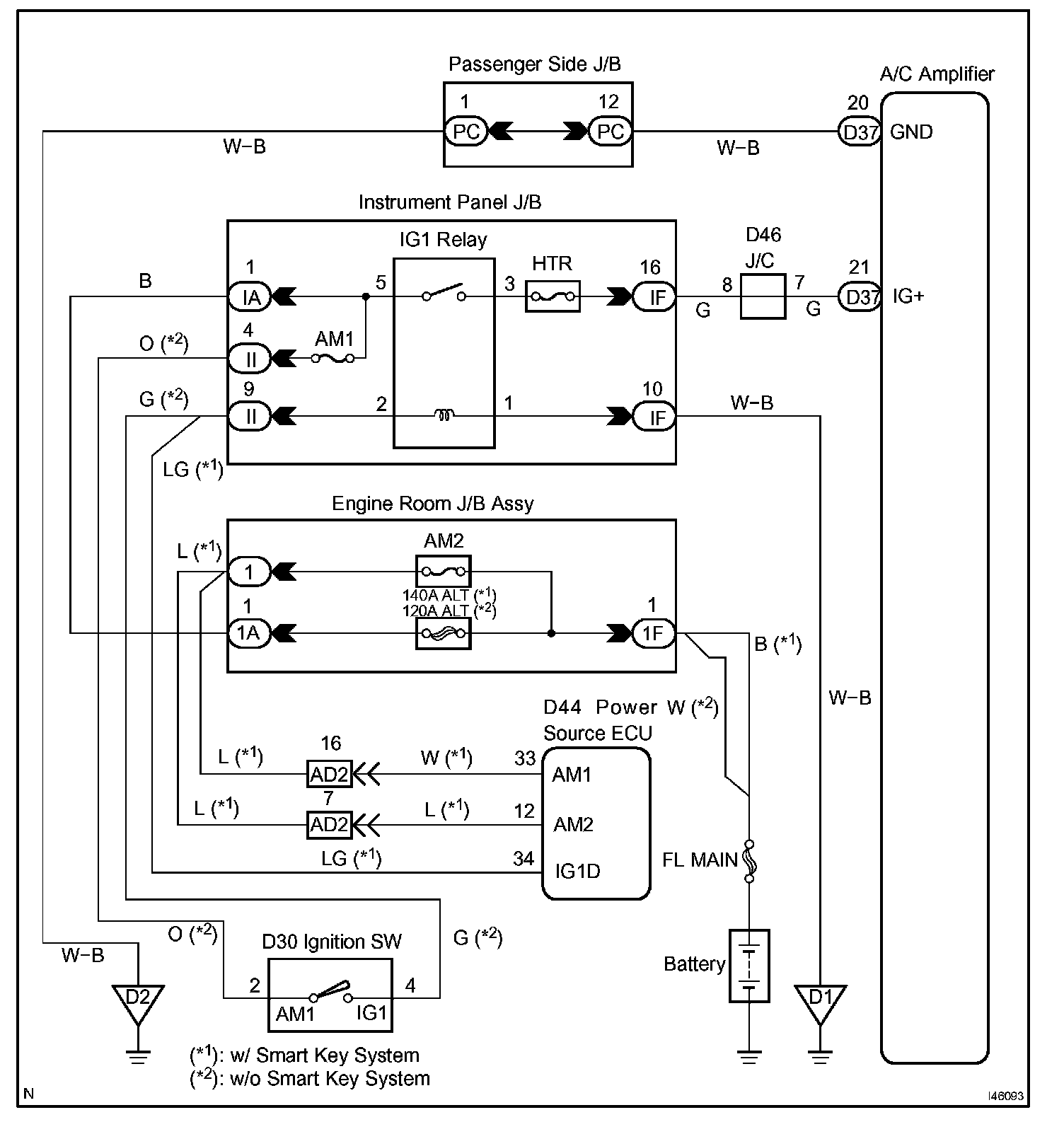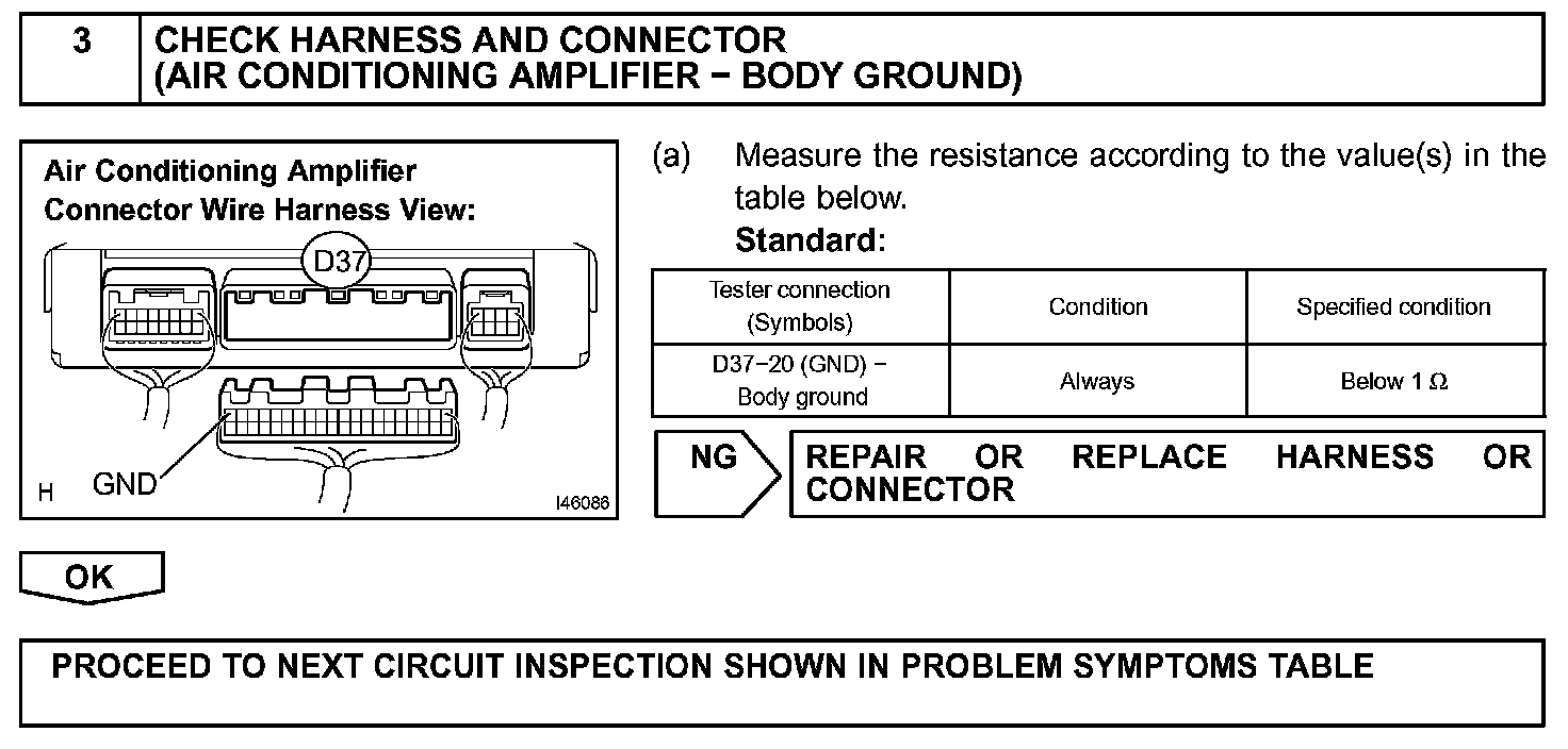 The main power source is supplied to the A/C amplifier when the ignition switch is turned to the on (IG). The power source supplied is used for operating the A/C amplifier and servomotor, etc.