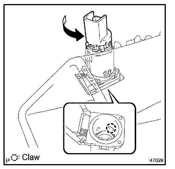 c. Turn in the direction indicated by the arrow and push the power outlet socket assembly.
