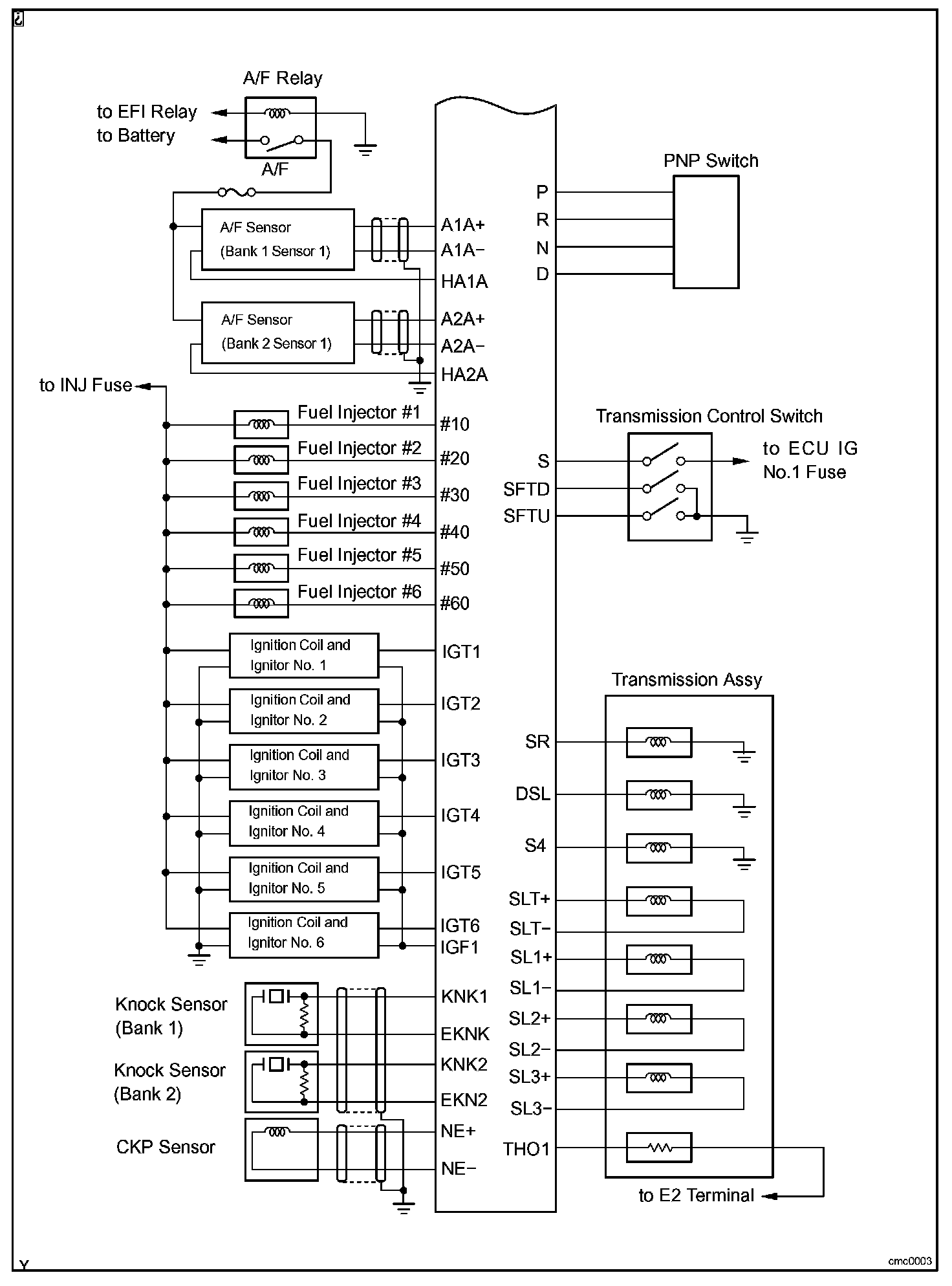 The ECM communicates with the following ECU using the signals listed. The table explains receiving and sending signals by the ECM or ECU.