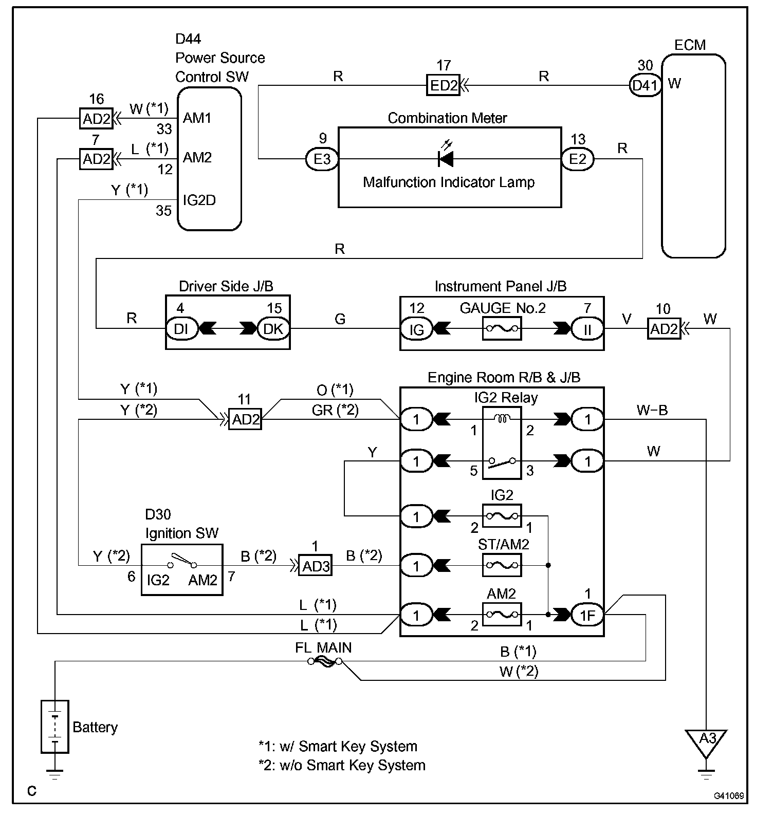 By turning the ignition switch on (IG), power is supplied to the MIL circuit, and the ECM provides the circuit ground, which illuminates the MIL.