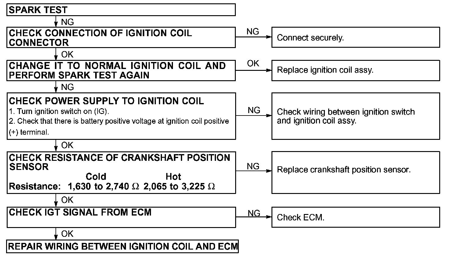 If a spark does not occur, perform the shown test: