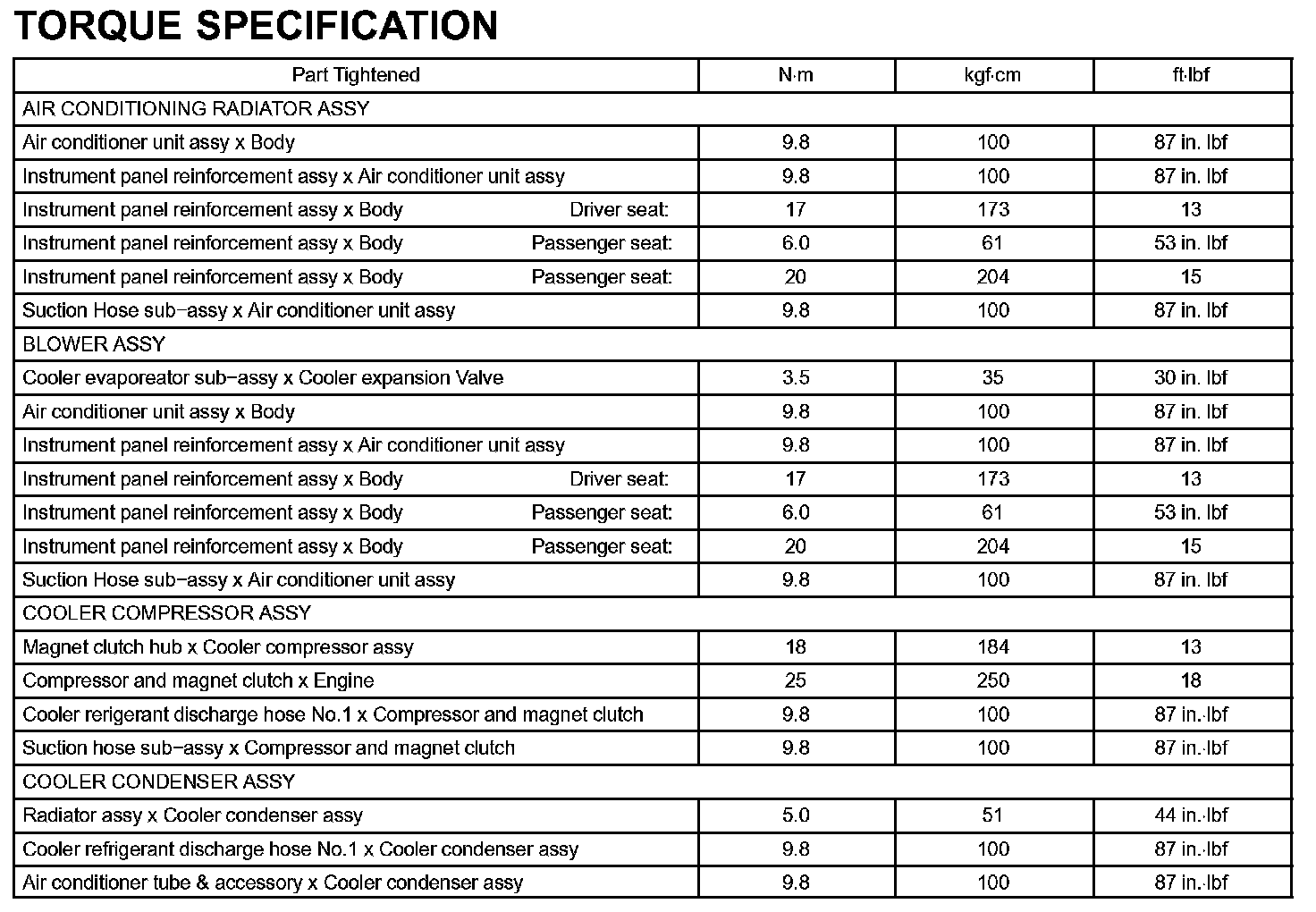 Heater & Air Conditioner-Torque Specification: