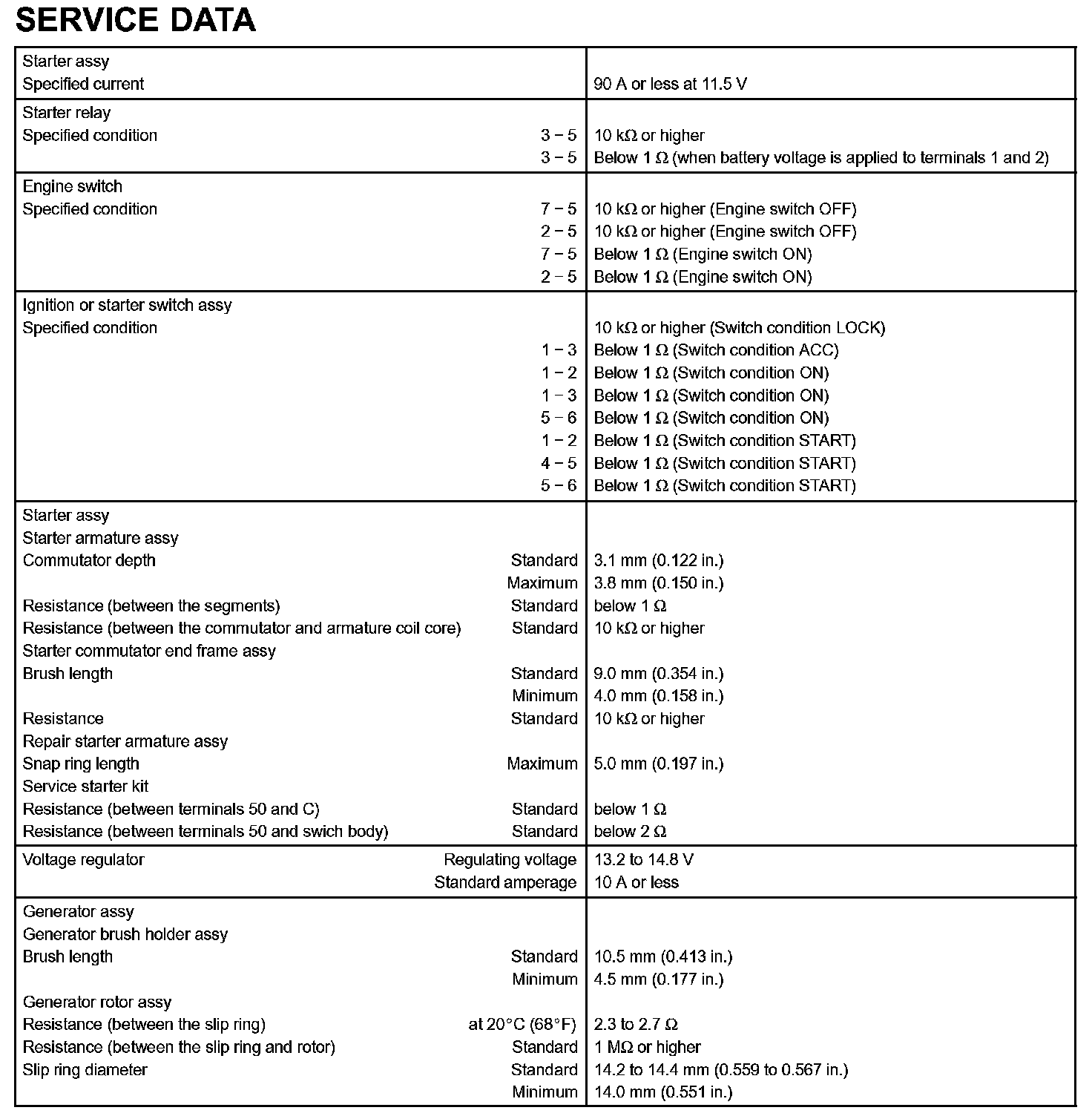 Starting & Charging-Service Data: