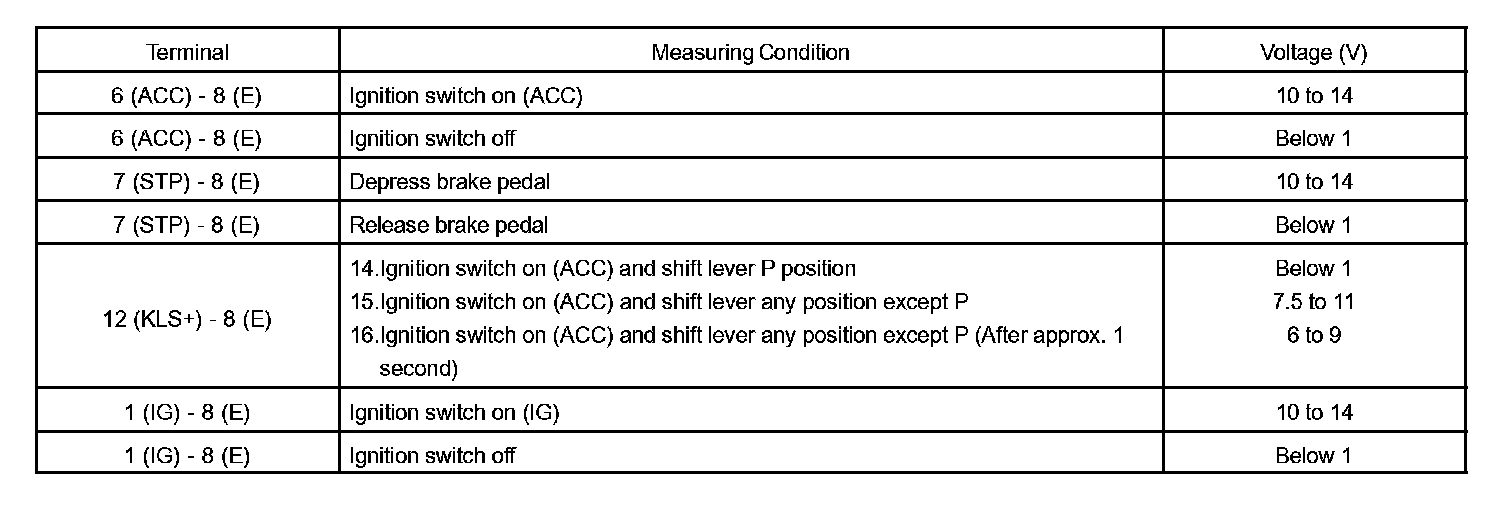 d. Turn the ignition switch on (IG), depress the brake pedal and check that the shift lever can be moved to another position.