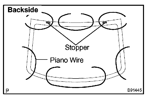 a. From the interior, insert piano wires between the vehicle body and glass as shown in the illustration.