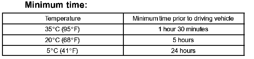 NOTE: The vehicle should not be driven until the time indicated in the table has elapsed after step (3).