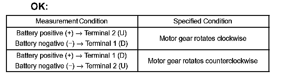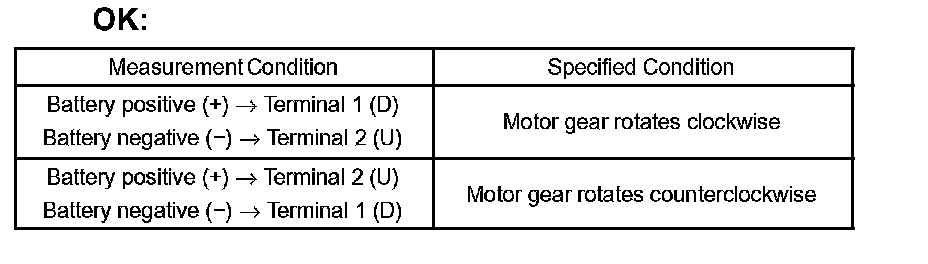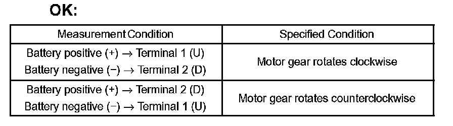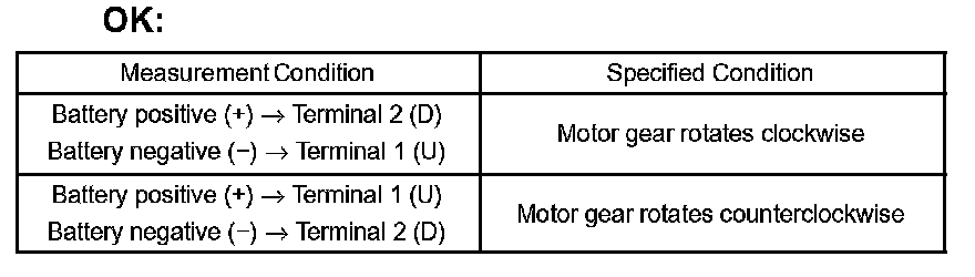 If the result is not as specified, replace the motor assembly.