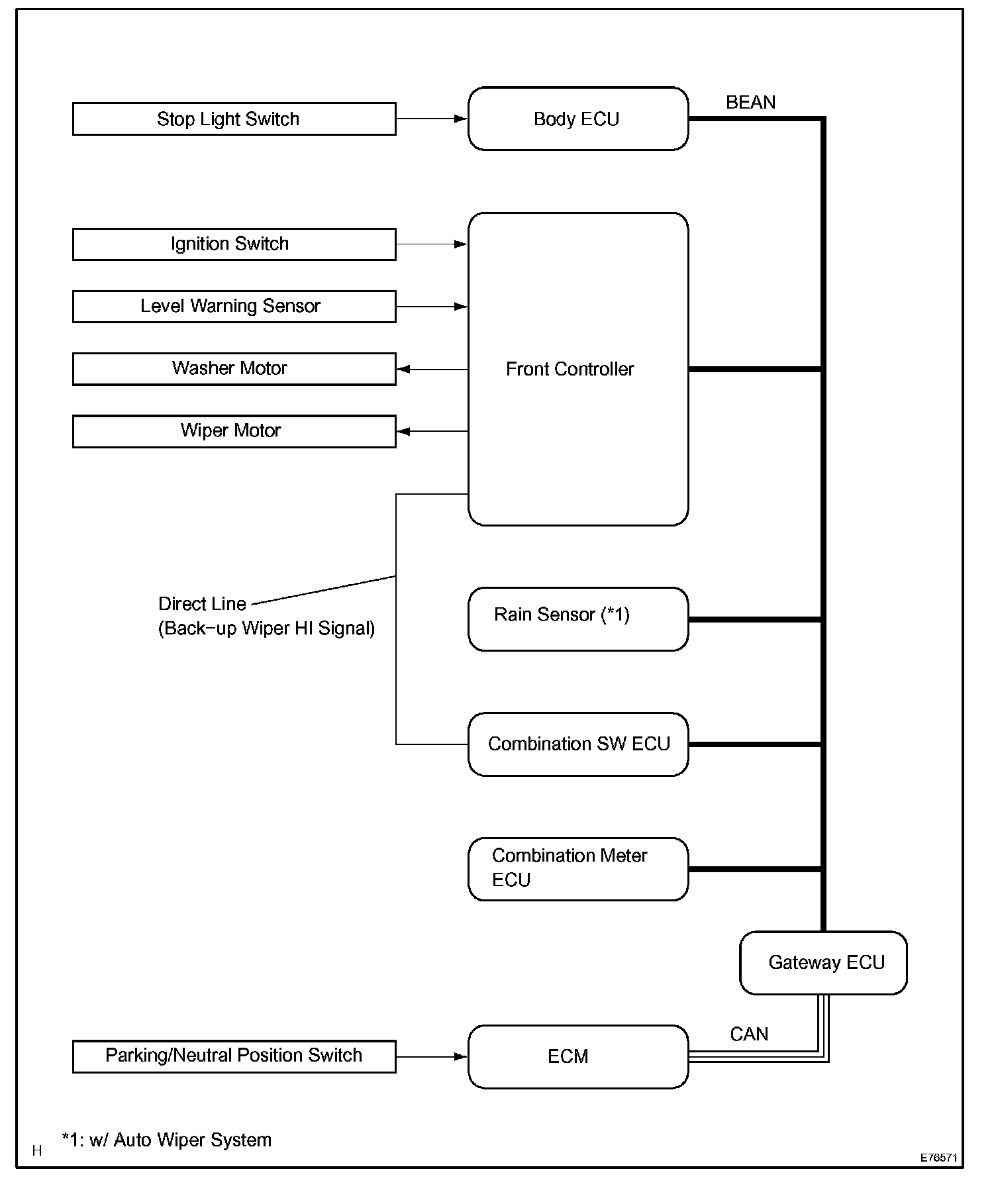a. When the front wiper system receives a wiper operation signal from the combination switch ECU, the front controller operates the wiper motor.