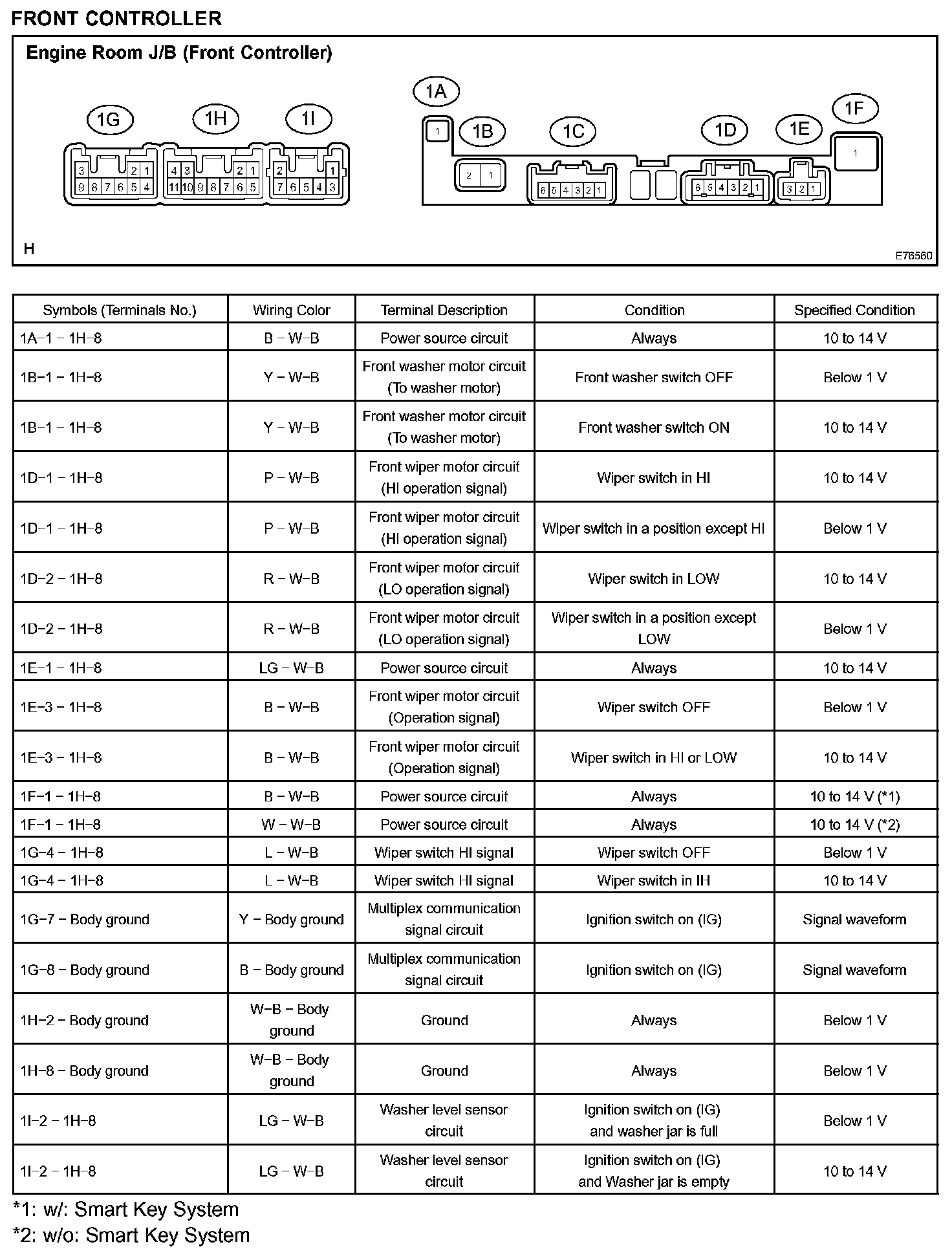 Terminals Of Control Module/Pinouts - Front Controller: