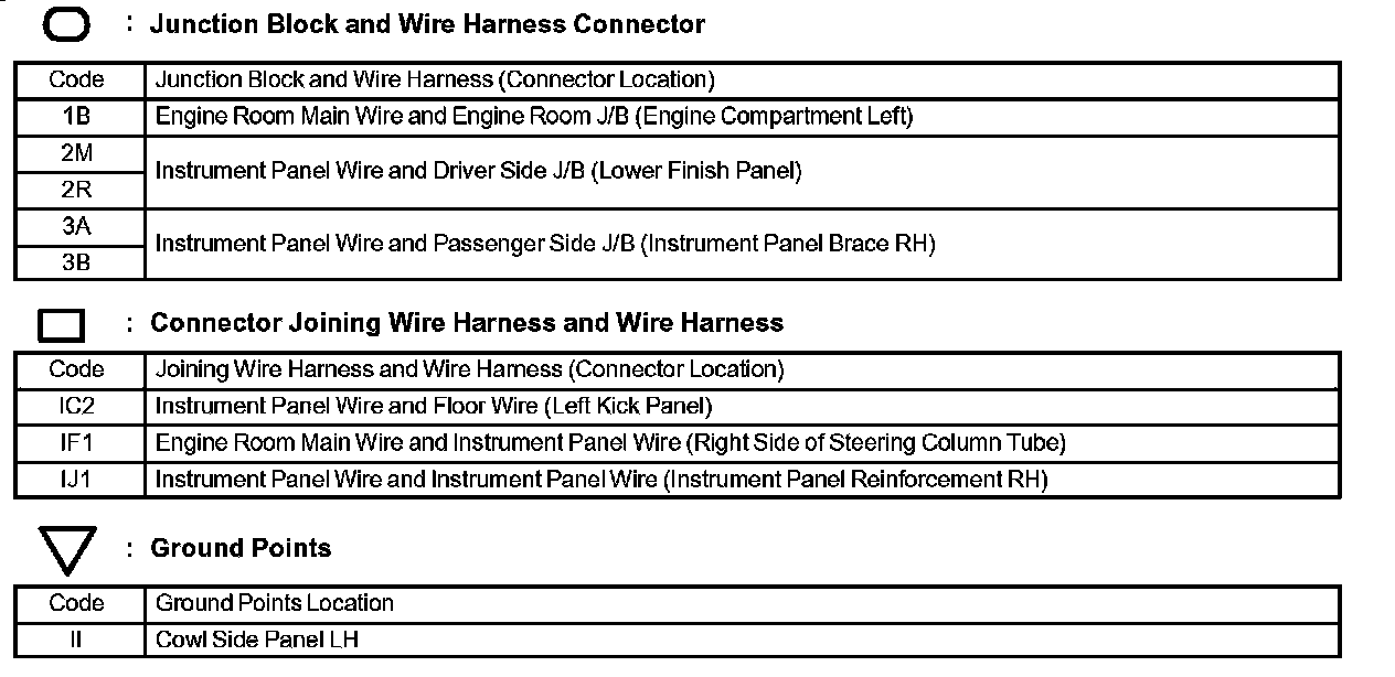 Locations: The locations of components, connectors, ground points, and splices referred to within these diagrams can be found at Vehicle Locations. Locations