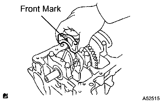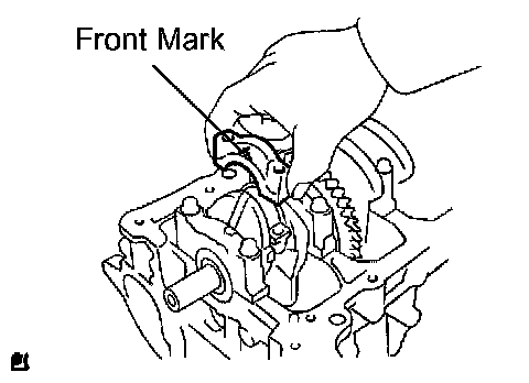 c) Examine the front marks and install the bearing caps on the cylinder block.