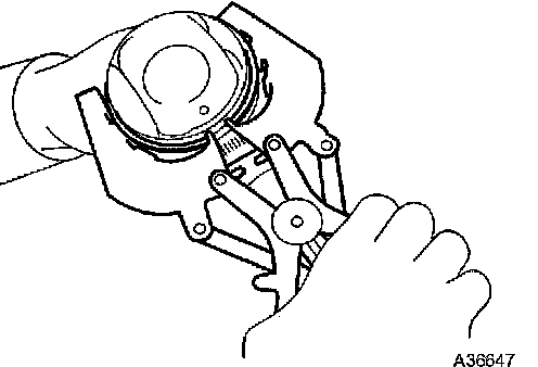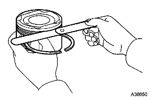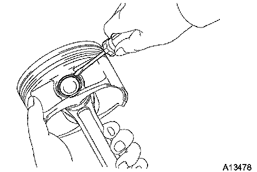 a) Using a piston ring expander, remove the 2 compression rings.