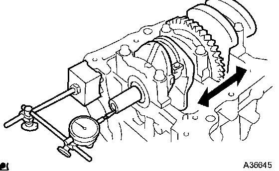 a) Using a dial indicator, measure the thrust clearance while prying the crankshaft back and forth with a screwdriver.